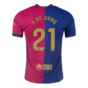 Barcelona F.DE JONG #21 Home Custom Player Version Soccer Jersey – Spotify Logo Without Text
