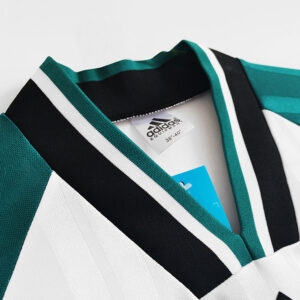 Retro 93/95 Liverpool Away Soccer Jersey. Bright colors, Adidas badge is great, crest and sponsor are great. Made by Adidas. Away shirt as worn when Roy Evans took over from Graeme Souness and guided the side to the Coca-Cola Cup triumph over Bolton. Classic away shirt as worn when Roy Evans took over from Graeme Souness, finishing 8th and 4th respectively in the Premier League and also won the 1995 League Cup final, beating Bolton Wanderers 2-1 with Steve McManaman scoring a brace before Alan Thompson scored a consolation goal for Bolton.